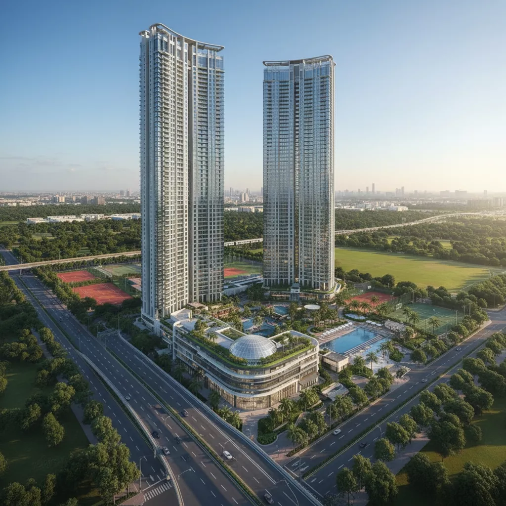 Spread across 5 acres, the project comprises only two elegantly designed towers rising up to G+46 floors, housing a limited 350 residences. This controlled density allows for wider internal roads, larger green zones, and better privacy for residents. With 85% open area, east and west-facing balconies, and uninterrupted lifetime green views, Adani Sector 102 offers a calm and breathable living environment rarely available in high-rise developments.